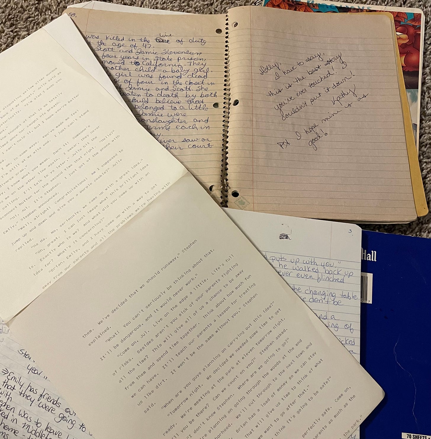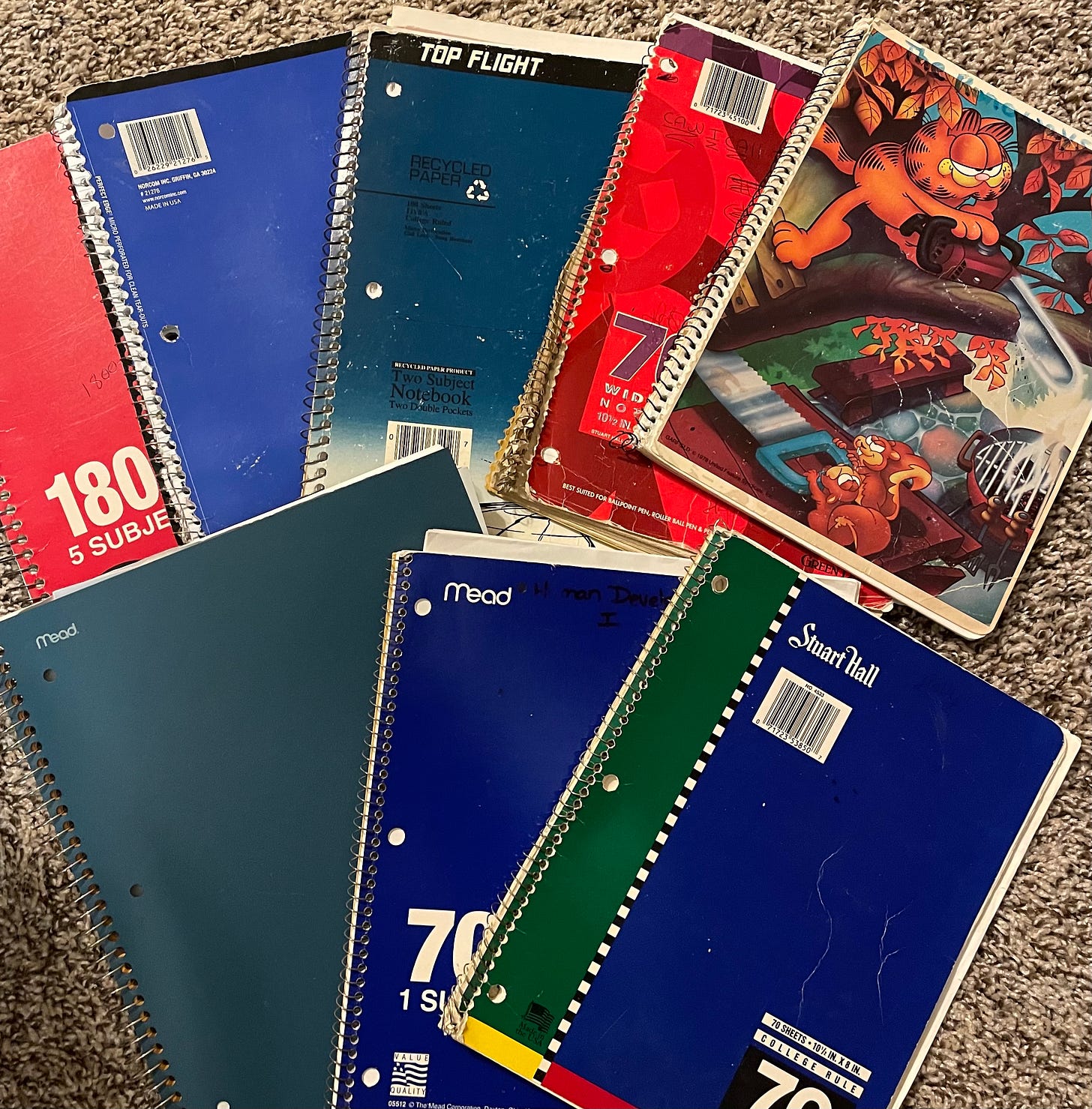 I started writing when I was probably 12 or 13 in random spiral notebooks. I thought I was going to be the next SE Hinton. You can obviously guess how that turned out for me. This is for several reasons, though. One, I never thought my books were long enough and in the early 90s, I didn't know what a novella was! Granted, these are handwritten; typed we may be looking at long short stories. Two, I didn't think they were good enough. And, three, I had absolutely no idea I mean zero idea what to do. I mean, the internet wasn't around back then and a cell phone was unheard of. So these notebooks have just traveled around the country with me as I went to college, got married, moved back and forth from the East Coast to the West Coast... twice. And, now, I don't think I will ever do anything with them. They have become more symbolic than anything else.
