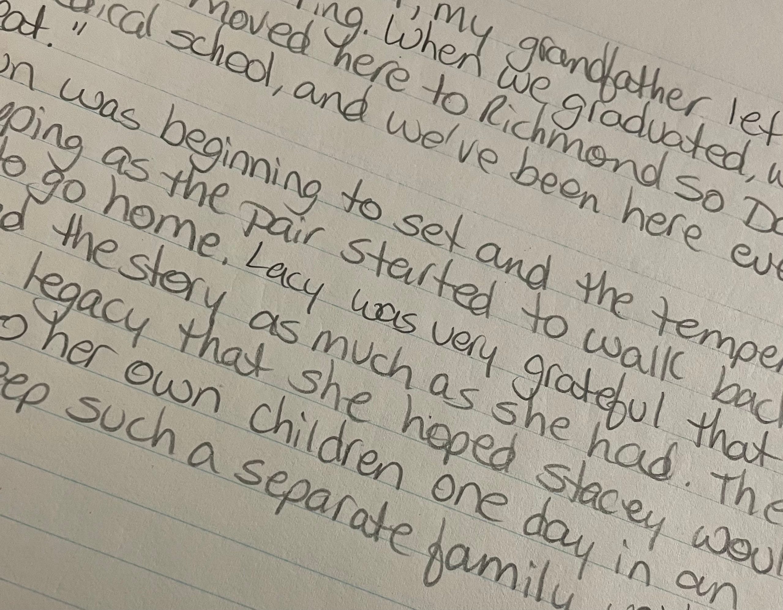 There were a few others, but as I was flipping through the pages of the notebooks, these were the ones that stuck out to me. While skimming, I can definitely see some of my interests and childhood reflected in the words. I guess we really do write about things we know and understand, even more so when you yourself are young and trying to figure things out. So, for example, several of these books involve moving/leaving home. When I was growing up I went to seven different schools between Kindergarten and 7th grade. I understood moving.
